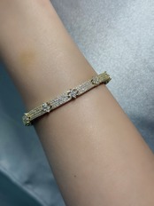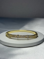 洗練された大人可愛い魅力を持つ、Fleuriaです。このおしゃれなバングルは、ゴールドのキラキラした輝きが特徴で、花モチーフがあなたのスタイルに華やかさをプラスします。シンプルながらも個性的なデザインが、デイリーファッションから特別な場面まで幅広く活躍するアイテムです!手元を素敵に彩るFleuriaをぜひご体感ください。